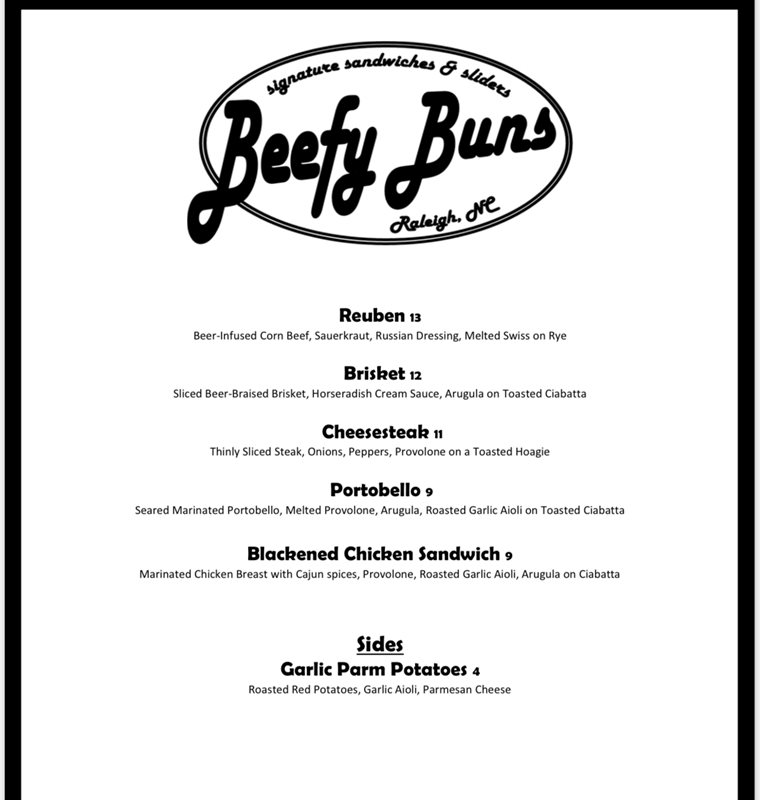 It was a muggy evening of Summer 2017, when three corporate restaurant managers were talking about their typical Sunday workday. You see, Sundays are THE WORST day of the week no matter how busy you are, how slow you are, etc. That particular day of the week never ceases to amaze any of us, with its constant struggles and challenges it throws our way. On that particular Sunday evening, adult beverages in tow, the three managers dreamt of a day that they worked for themselves, worked on a schedule approved by them, worked for a dream and a business plan that they wrote, and more importantly a promotional ladder that they controlled. I'll give you a hint, it wasn't a brick and mortar. They saw what the food industry was turning into. They saw their dream on four very large wheels. Less than 36 hours later, several trips to and from the bank, multiple phone calls to family members for support, and hours of day dreaming, a truck was acquired. But it wasn't done yet. The journey had just started. Which brings us to the present. Summer of 2018. The trucks build was all done at home, of course they had help from their friends in Durham and Wendell with tasks they couldn't wrap their heads around. The menu was finished. The equipment was purchased. The trucks branding was complete. Welcome to their Beefy Buns Dream.