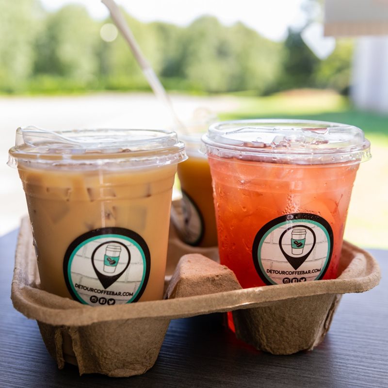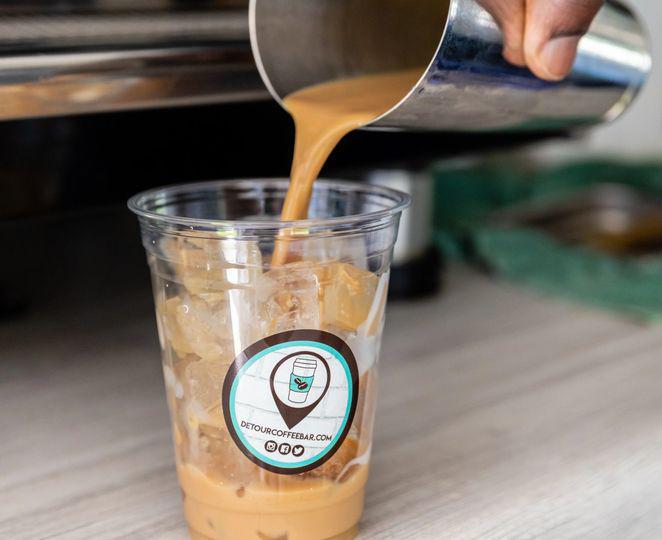 Detour serves coffee and espresso beverages (locally roasted by Enderly Coffee), teas, chais, smoothies, ciders, cocoas as well as ready-to-eat pastries. A full coffeebar in a 12ft truck!