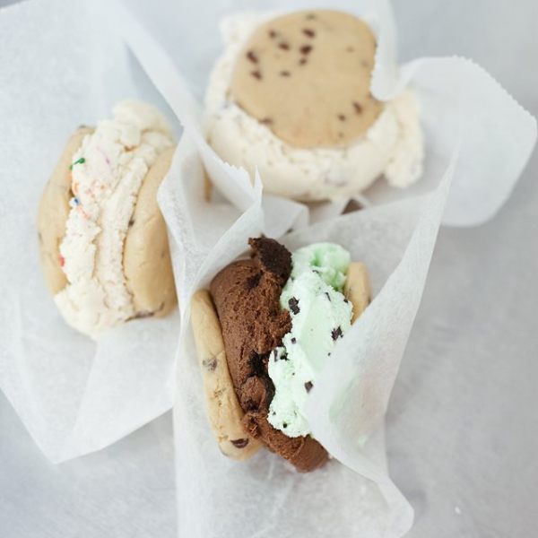 Chocolate chip cookie dough sandwich - filled with your choice of cookie dough.
