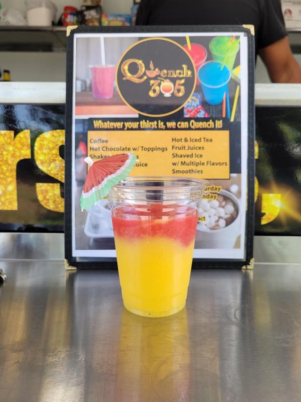 Welcome to Quench 305! We have a variety of drinks to suit your needs - smoothies, milkshakes, shaved ice, coffee, tea, water, fresh juices and more! Whatever your thirst is, we can Quench it!