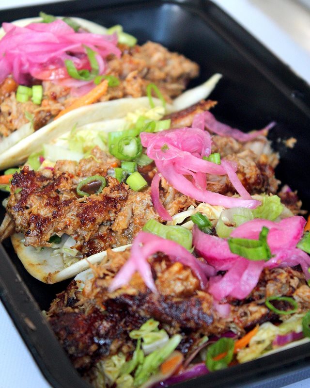 - Korean Hot Honey Chicken Bao Buns: Steamed buns with fried chicken, house made pickles, and napa slaw drizzled with Korean hot honey and sesame seeds.