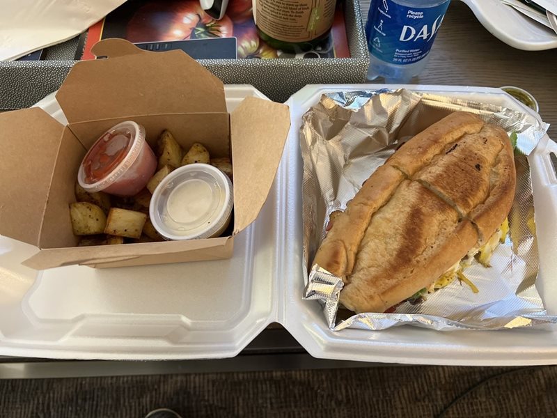 Breakfast Sandwich- avocado, scrambles eggs, pico, black beans, cheese on a roll
