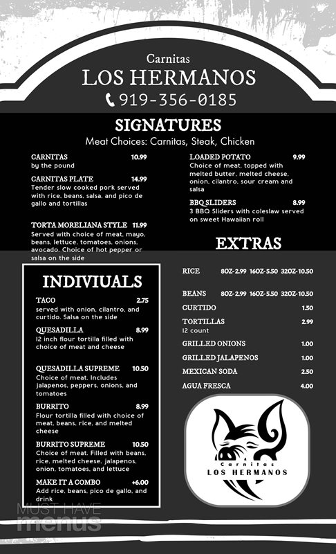 Serving Traditional Mexican Cuisine, Los Hermanos was born based on a generational recipe passed down from Father to Son. While our specialty dish is Carnitas a delicious plate of fried pulled pork we also offer a flavorful option of steak and chicken as your base meat, from there we can make a variety of options like tacos, quesadillas, burritos and much more.