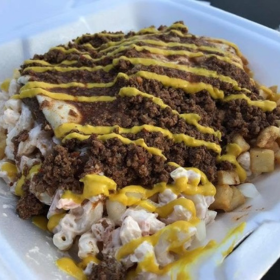 Trash Talk Food Truck was started in August of 2018 by Lori Herndon, a Rochester, NY native. She wanted to bring her version of the “Trash Plate”, a famous dish from Rochester, NY to North Carolina not only because she thinks the food is great, but also because it seemed like a niche that needed to be filled to satisfy all of the “yankees’’ just like her who have migrated to the Triangle. Trash Talk’s favorite Cheeseburger Trash Plate features two delicious cheeseburger patties laid on a bed of home fries and macaroni salad and then topped with onions, mustard and a delicious meaty “hot” sauce. If you prefer a Hot Dog Trash Plate, Lori carries a steady supply of Zweigle’s red and white hots. If you haven’t tried one yet you need to! It’s a taste you never forget that will tantalize your palate!
